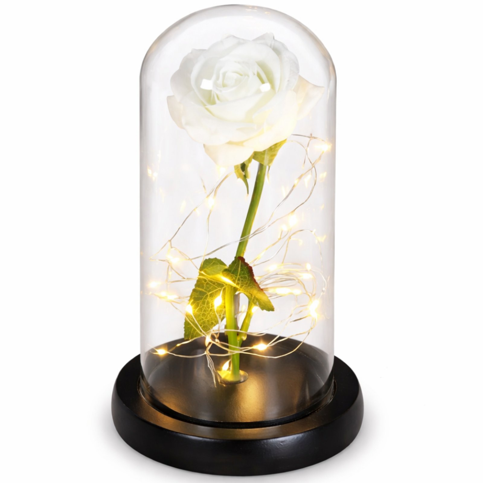 - De charmante rozen zijn gemaakt van hoogwaardige materialen, zodat de rozen en bloemblaadjes er heel echt uitzien, en zijn bedekt met een heldere glazen koepel om de rozenbloem te beschermen en blijvend te maken.
