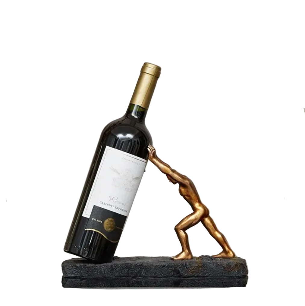 Voeg een unieke flair toe aan je woonruimte met deze creatieve wijnfleshouder. Dit stijlvolle accessoire is perfect voor wijnliefhebbers die hun flessen op een bijzondere manier willen presenteren.