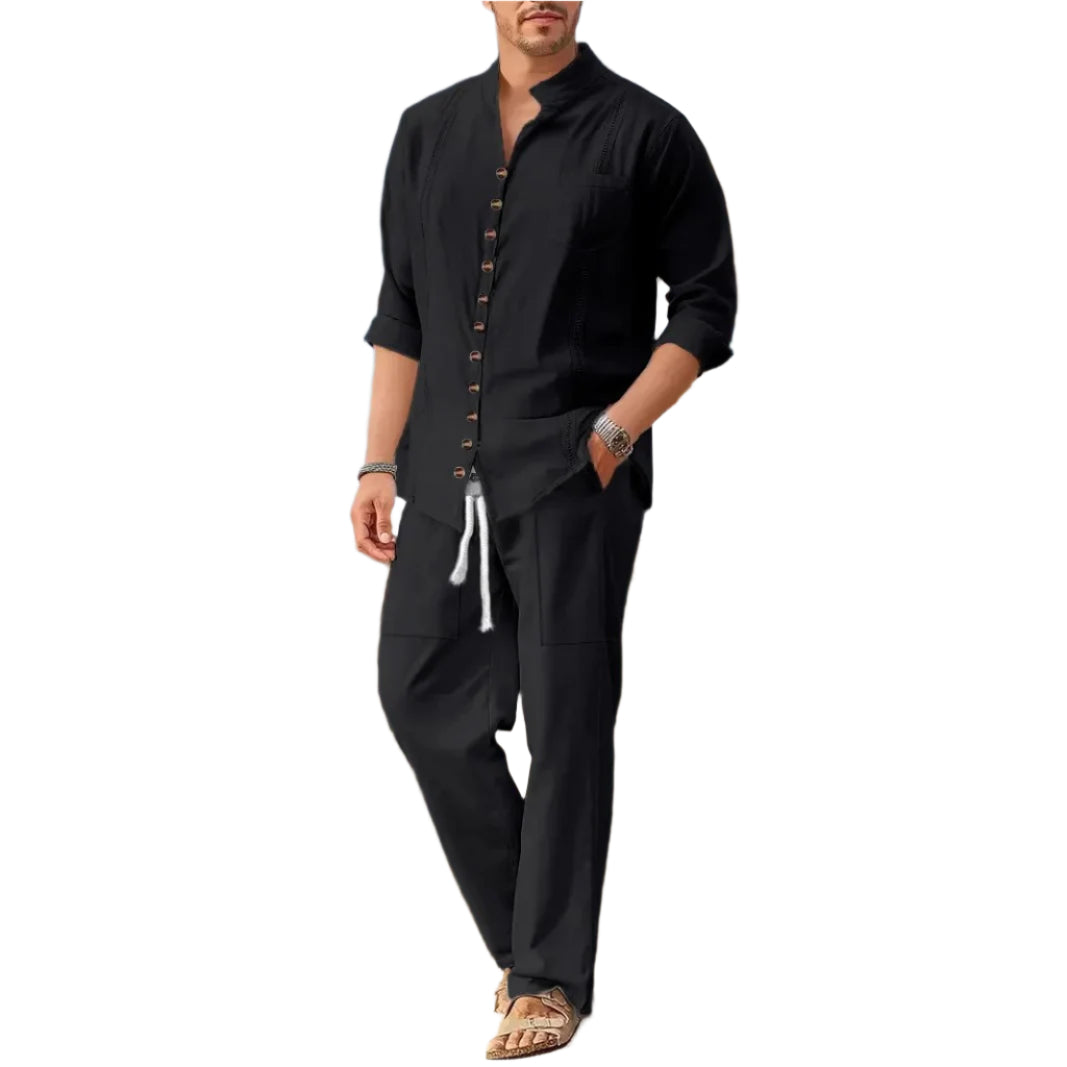 Herenoverhemd van katoen en linnen met opstaande kraag