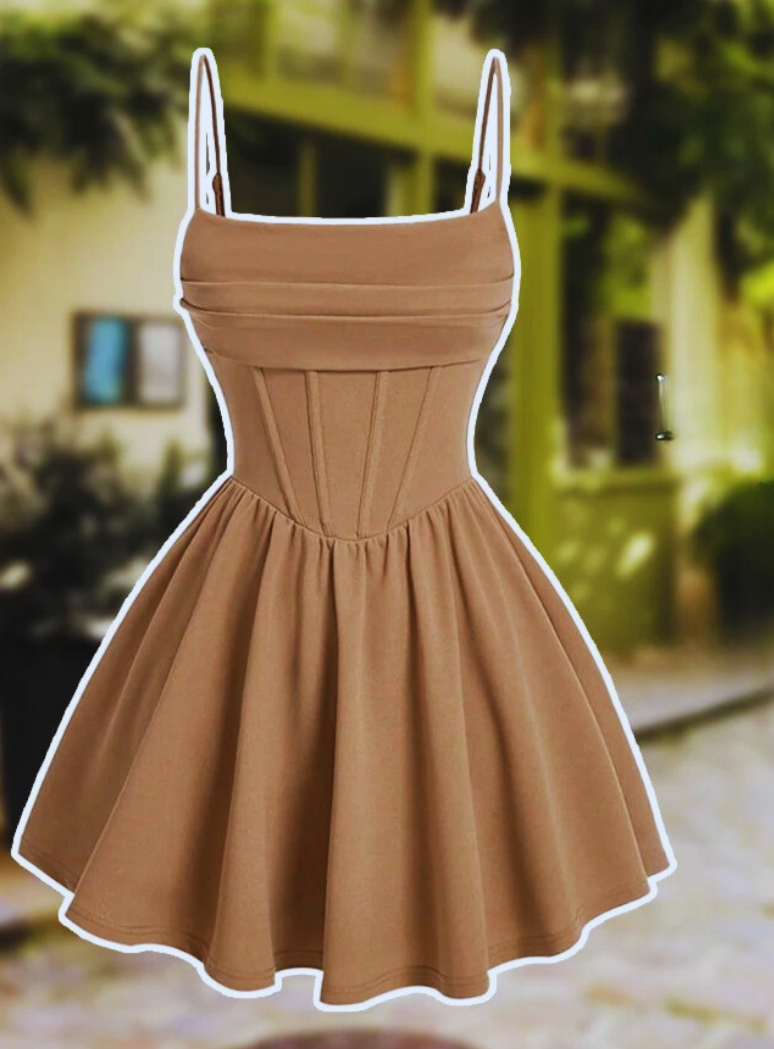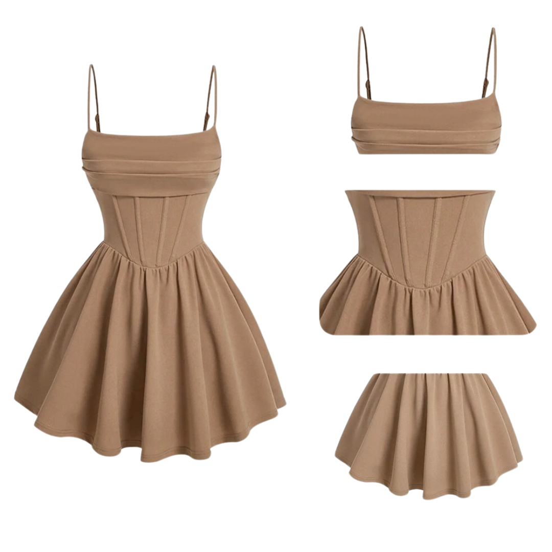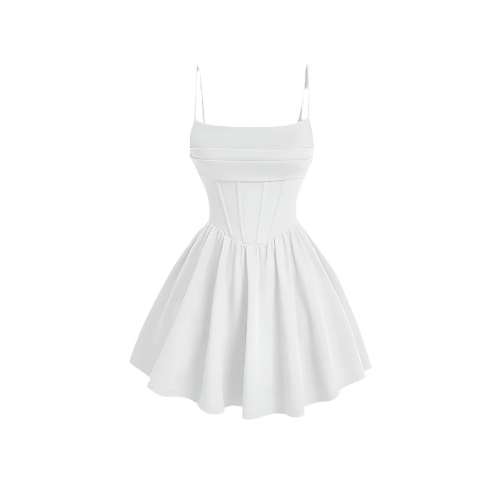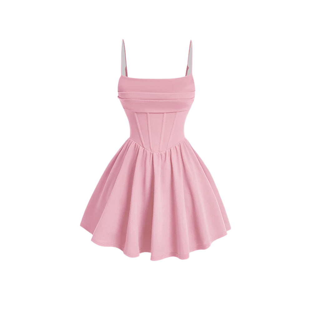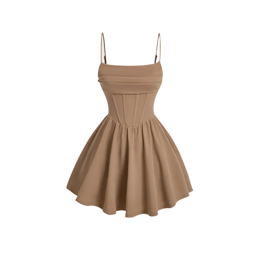 Deze A-lijn mini-jurk heeft een vierkante halslijn, mouwloze snit en zachte plooien voor een tijdloos silhouet. De effen rode kleur zorgt voor een gedurfde maar verfijnde touch, terwijl het getailleerde lijfje en de uitlopende rok een evenwichtige, vrouwelijke vorm creëren.