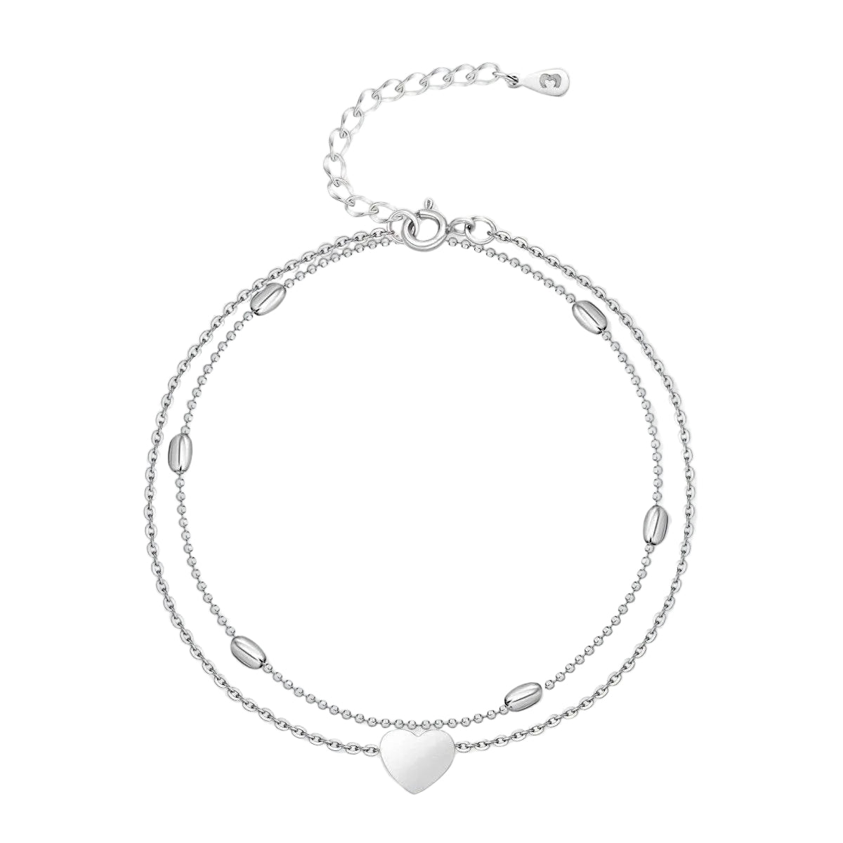 Dames Enkelbandje Hartontwerp Verstelbaar met Dubbele Ketting