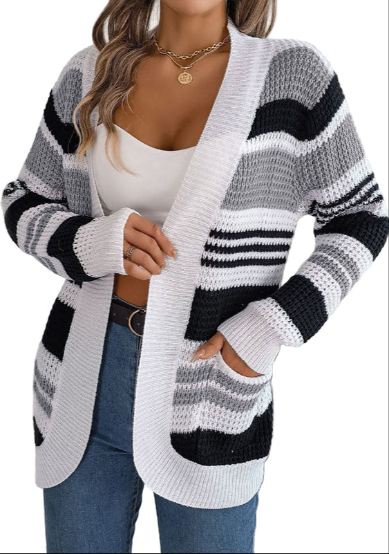 Met zijn zachte materiaal is deze trui ideaal voor de lente, herfst en winter. Het gestreepte patroon geeft een moderne uitstraling, terwijl de praktische zakken extra functionaliteit bieden.
