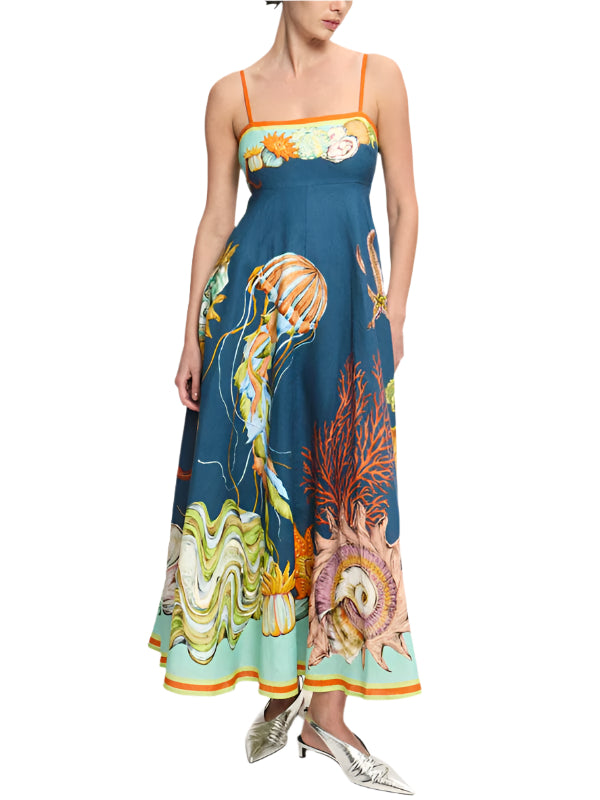 Deze prachtige mouwloze jurk is perfect voor een zomerse vakantie. Het graffiti ontwerp geeft een speelse uitstraling, terwijl het comfortabele materiaal zorgt voor een fijne draagervaring.