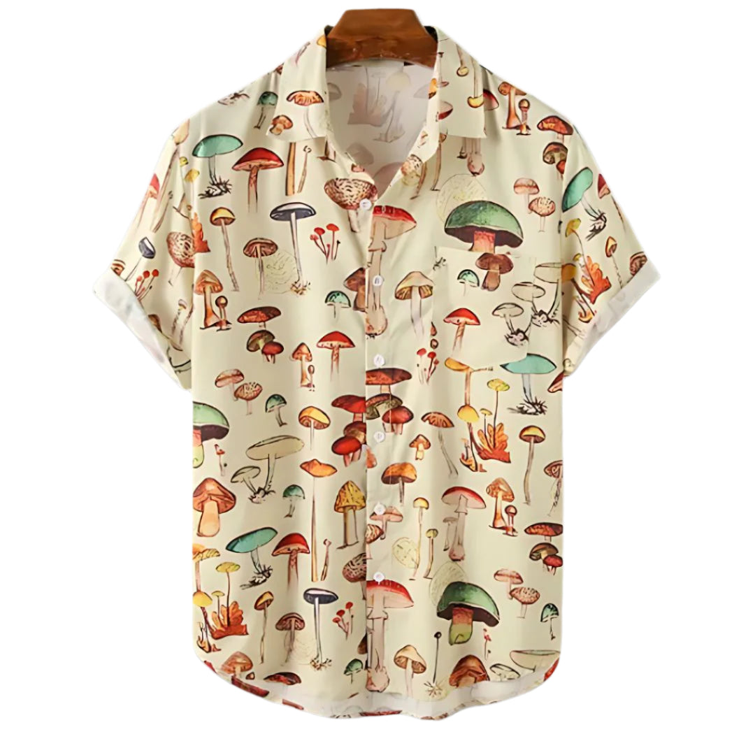 Heren Overhemd Met Paddenstoelenmozaïek Stijl
