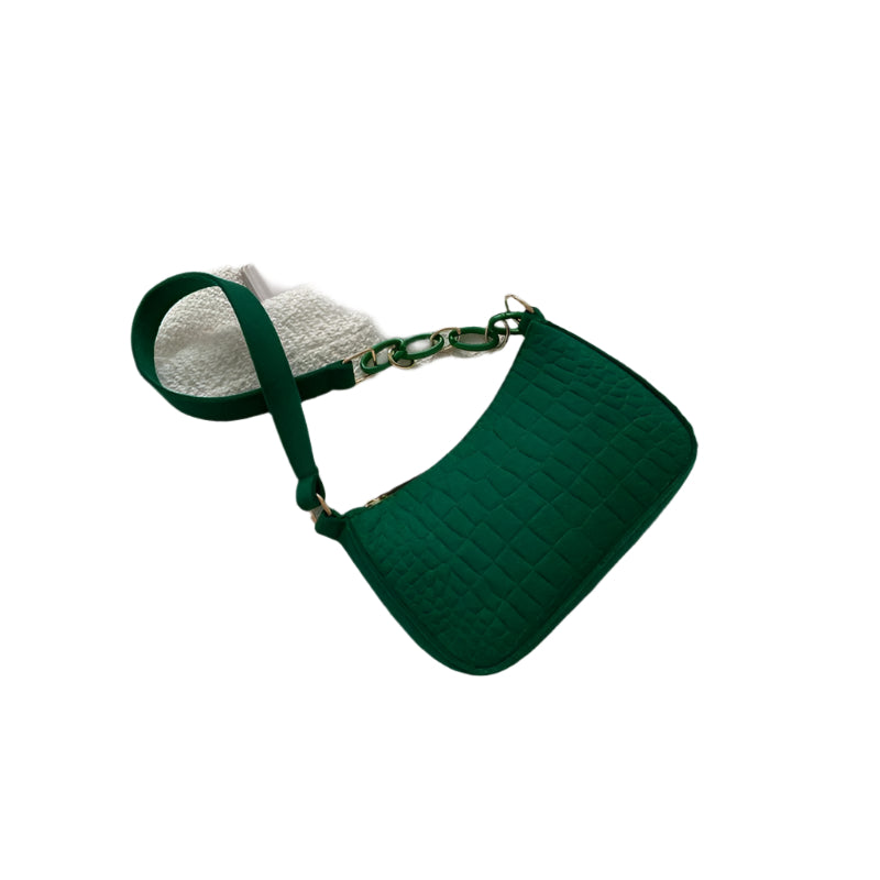 Deze handtas in halvemaanstijl combineert strakke lijnen met een zachte vilten textuur voor een gestroomlijnde pasvorm onder de arm. Ontworpen met een gestructureerde vierkante vorm en korte riem, zit hij comfortabel op de schouder en valt hij niet op. Dankzij het compacte formaat is hij gemakkelijk mee te nemen en biedt hij toch ruimte voor essentiële spullen.