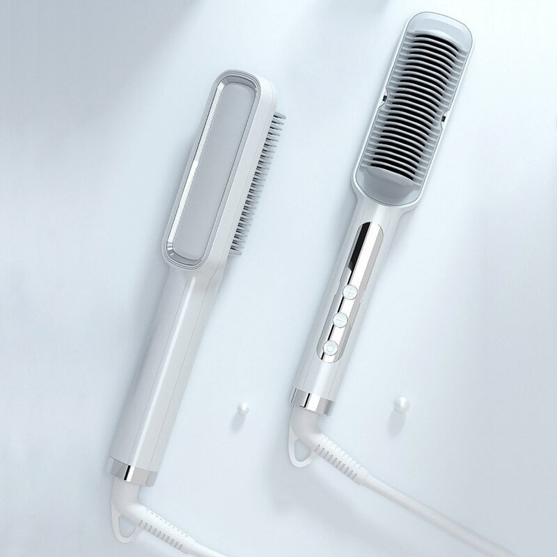 • VERSATIEL 3 IN 1 ONTWERP: Alles wat je nodig hebt voor prachtig en gezond haar, ontklittende kam, haarborstel, stijltang, baard stijltang, en anion haarmassager alles in één! Ontworpen met een 360-graden draaibaar basissnoer waarmee je je haar vanuit elke hoek kunt stylen en het meest professioneel ogende resultaat krijgt; een slimme eenvoudige one-touch knop en geavanceerd liquid crystal display laat je de temperatuur gemakkelijk regelen en controleren.